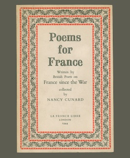 33. CUNARD, Nancy. ed. Poems for France: Written by British Poets on France since the War with Autobiographical Notes by the Authors. London: La France Libre, 1944.
