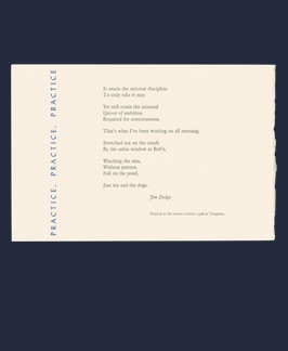 First edition. Folding card (8 ½ x 5 ½ inches, closed), printed in two colors. Fine. A long poem, issued for the Winter Solstice. $35