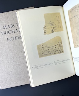 First edition. Folio. xvii + [221 pp]. Fine in full cloth and matching publisher’s slipcase. Preface by Pontus Hulten. One of 1000 numbered copies. Full-color reproductions of Duchamp’s notes, grouped into “Infrathin,” “The Large Glass,” “Projects,” and “Word Plays.” Texts in French and English translation. $500