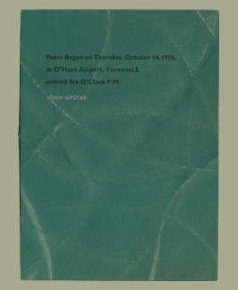 89. UPDIKE, John. Poem Begun on Thursday, October 14, 1993, at O’Hare Airport, Terminal 3, around Six O’Clock P.M.: A Poem. Louisville: the literary renaissance, 1994.
